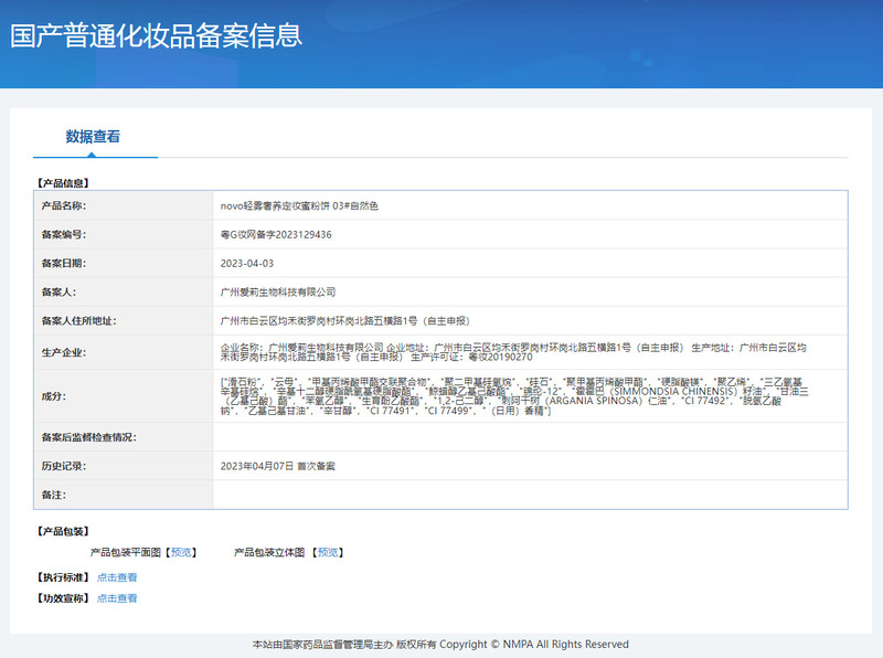 - Non-special cosmetics registration certificate number: Guangdong G makeup network registration number 2020191752