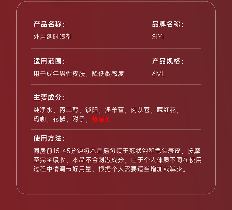 - Product name: Ice heat delay spray