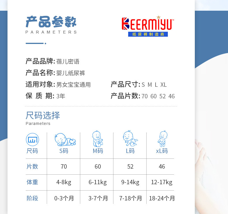 - 紙尿褲特質:乾爽