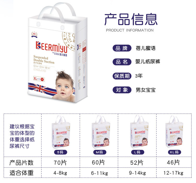 - Specification: Export pack diapers NB size 16 sheets