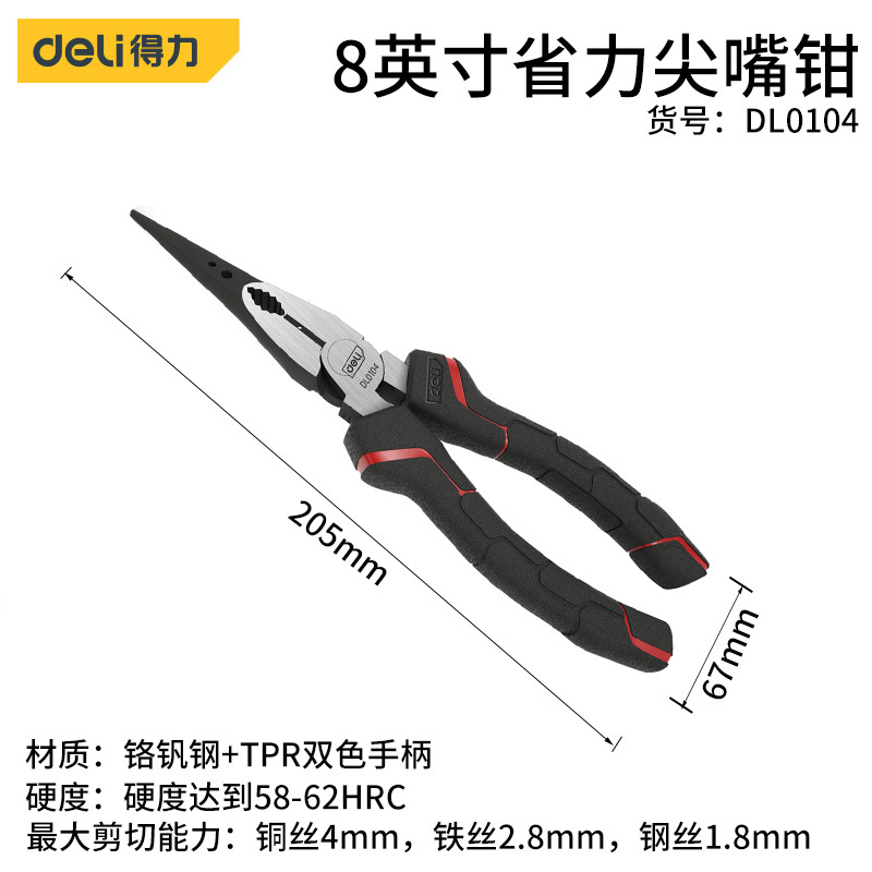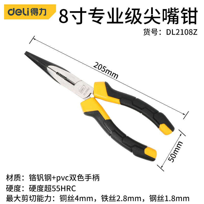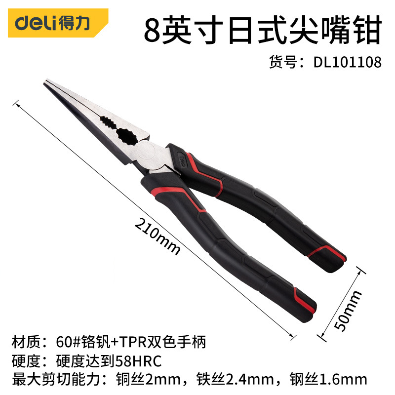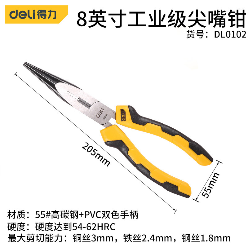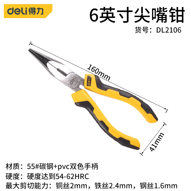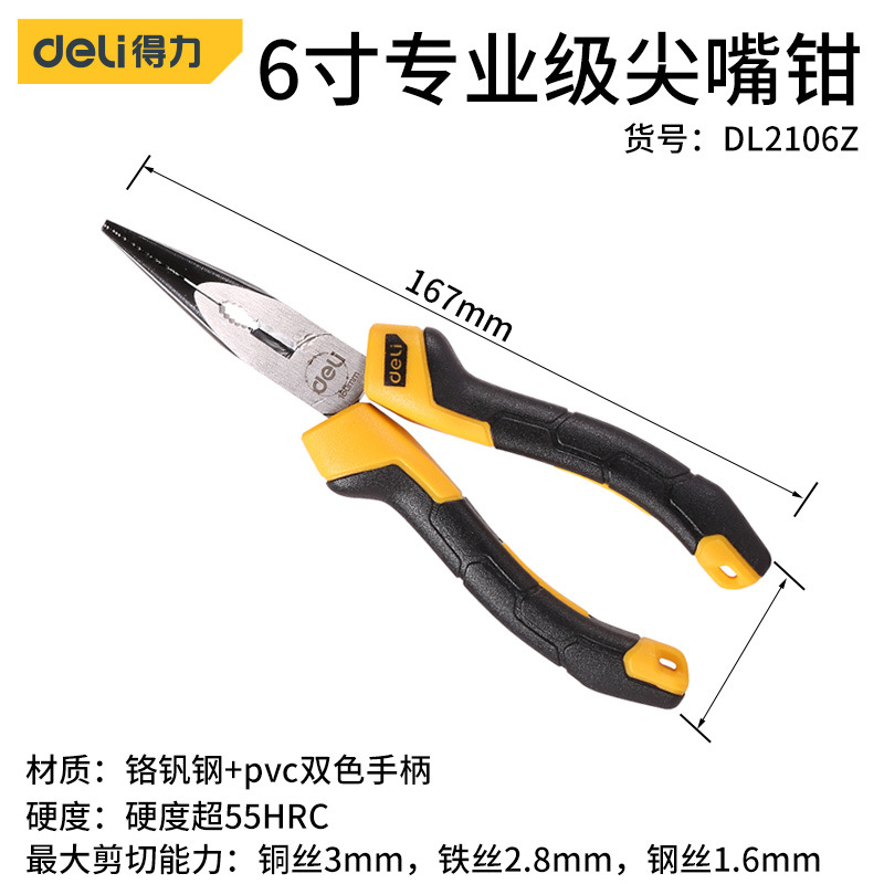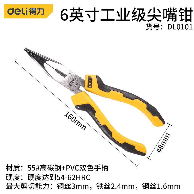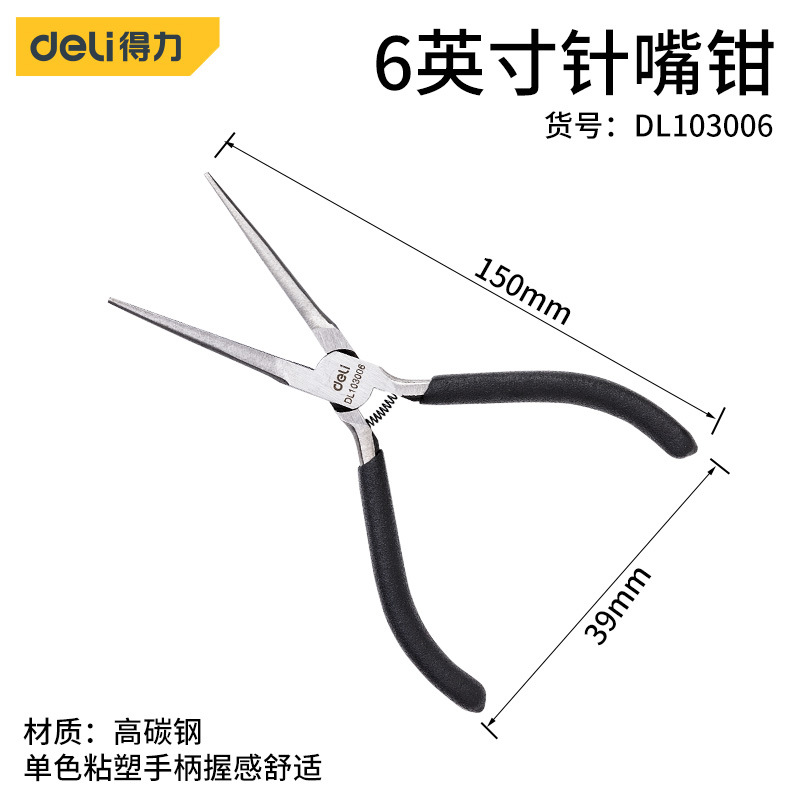 - Model: Deli 6-inch Industrial Needle Nose Pliers