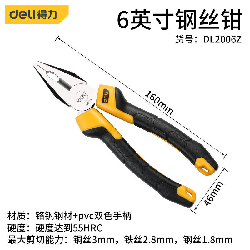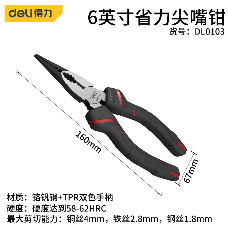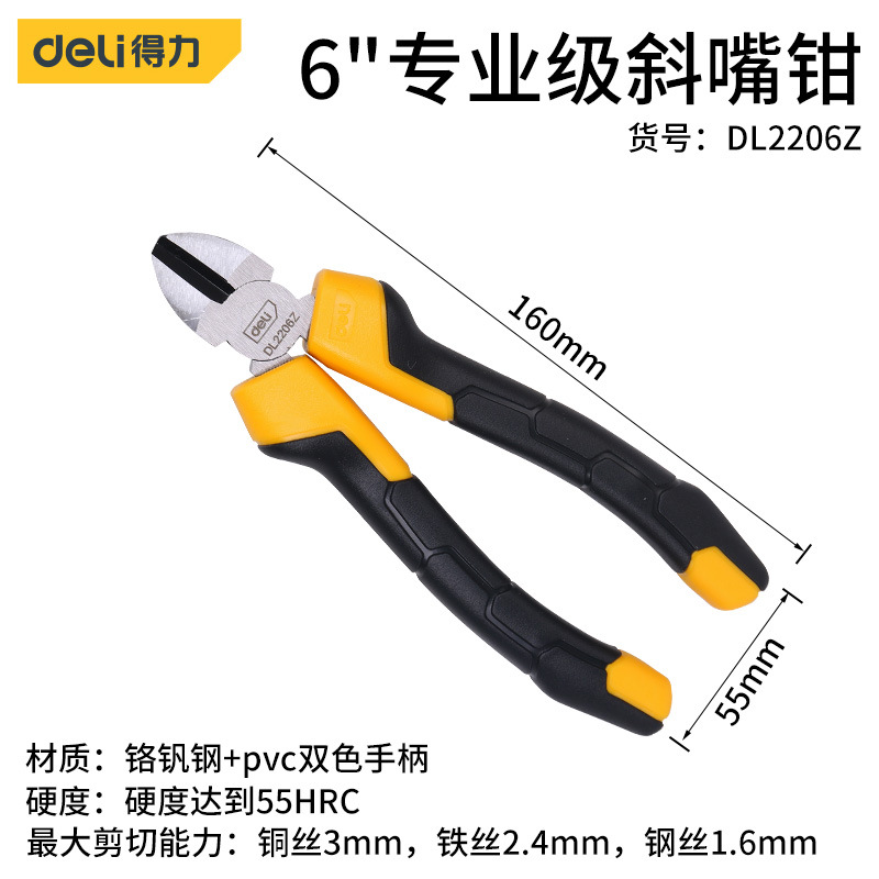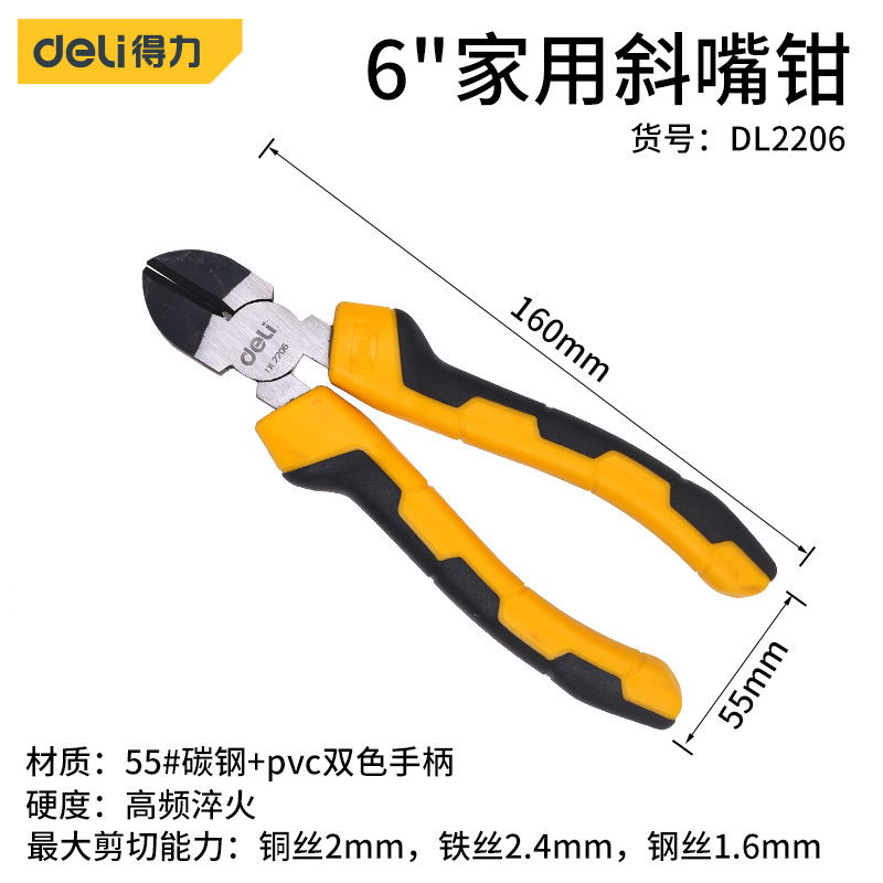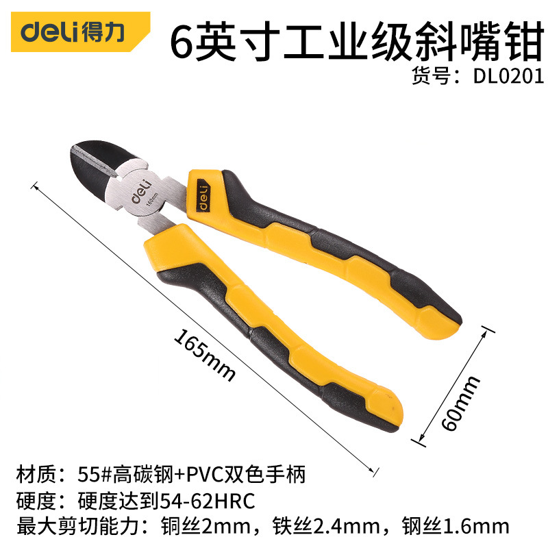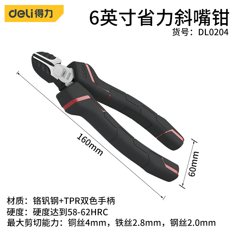 - Model: Deli 6-inch Industrial Force-saving Slant Nose Pliers