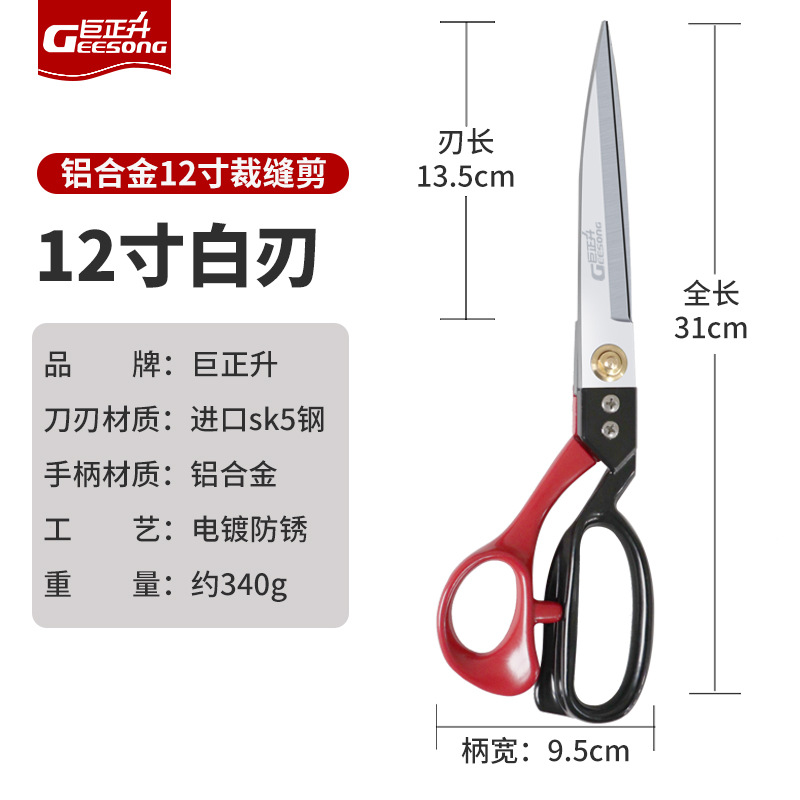 - Specification: 12-inch Aluminum Alloy Tailoring Shears - SK5 Steel White Blade