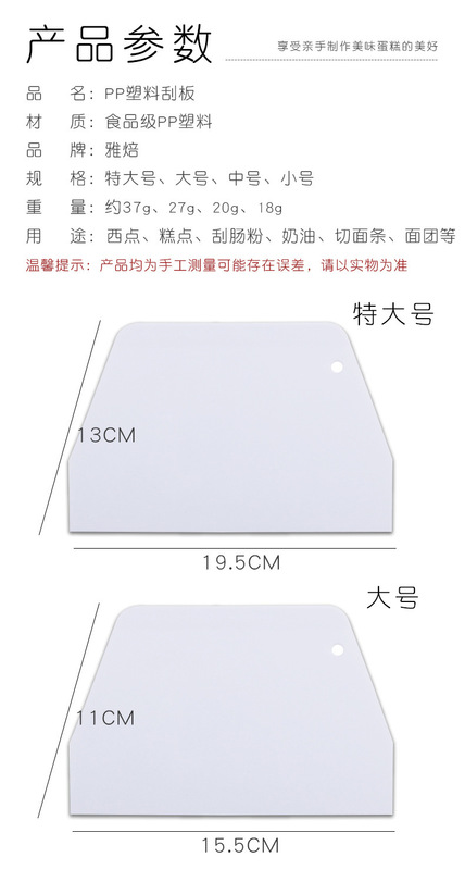 - Purpose: Noodle Skin Scraper, Cream Cake Scraper, Dough Knife