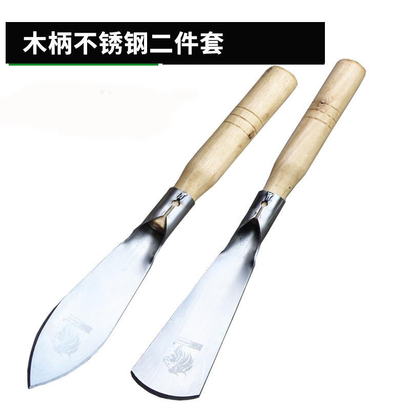 - Specifications: Set of two stainless steel shovels with wooden handles