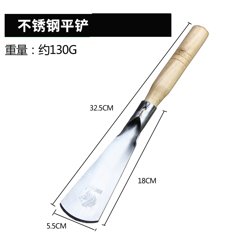 - Specifications: Stainless steel flat shovel with wooden handle