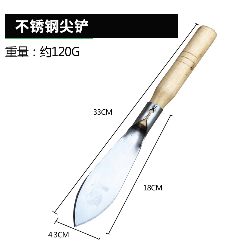 - Specifications: Stainless steel pointed shovel with wooden handle