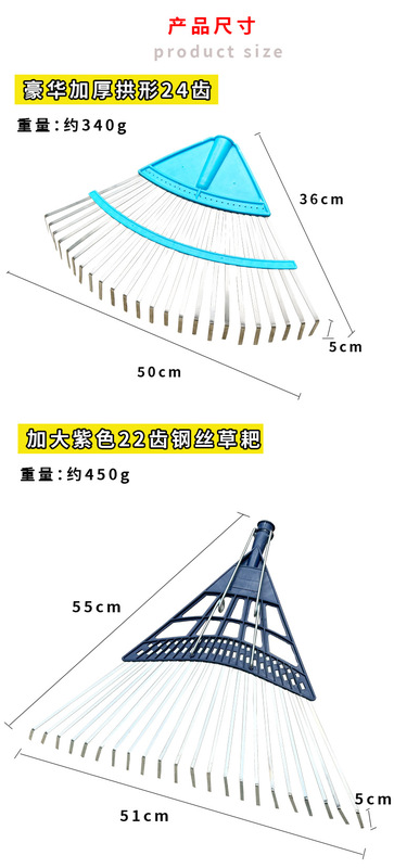 - Specification: 22-Tooth Thickened Blue Arch Wire Grass Rake