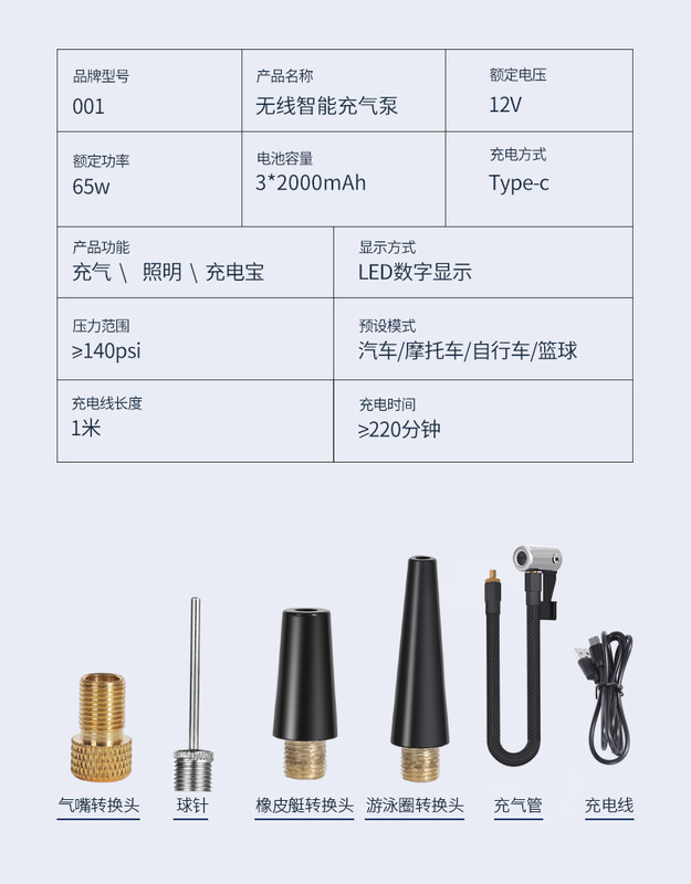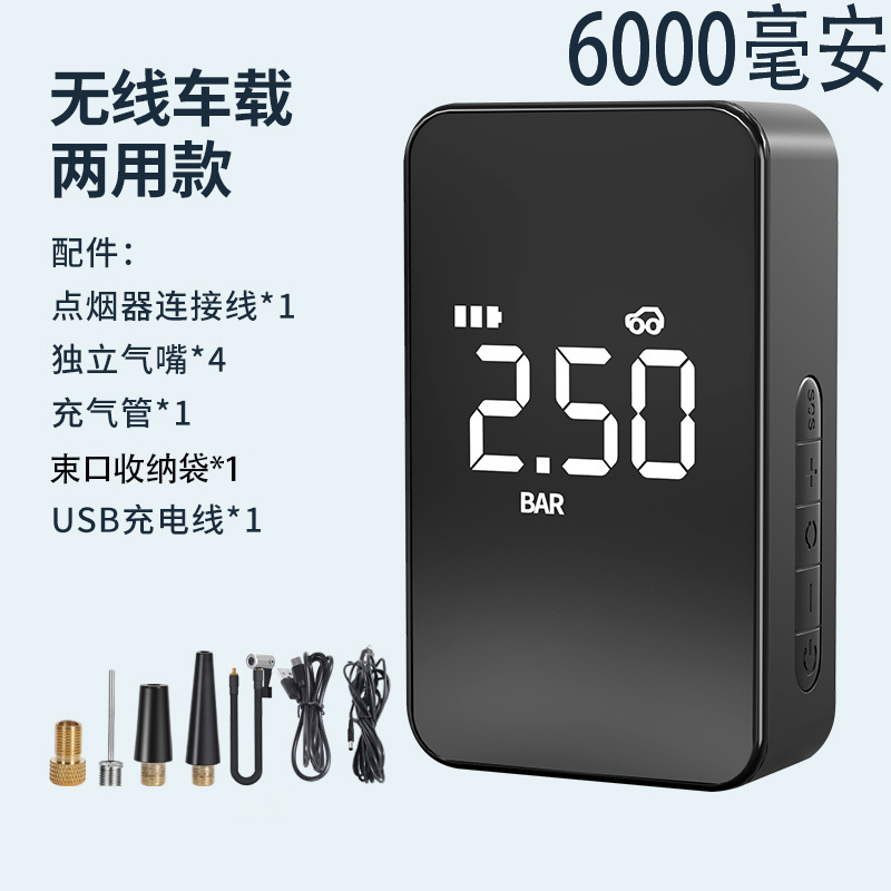 - Specifications: Wireless dual-use model (USB + cigarette lighter) 6000 mAh
