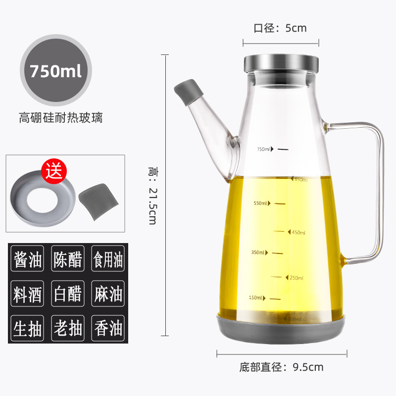 - Capacity: 750ml high borosilicate glass oil bottle [comes with bottom bracket + mouth cover + sticker]