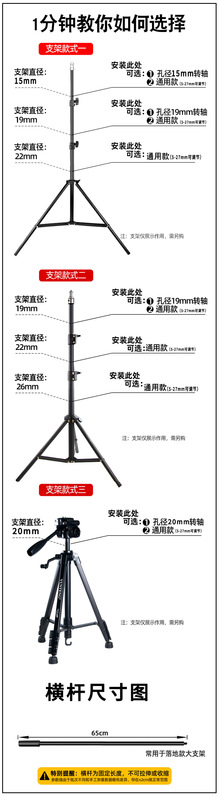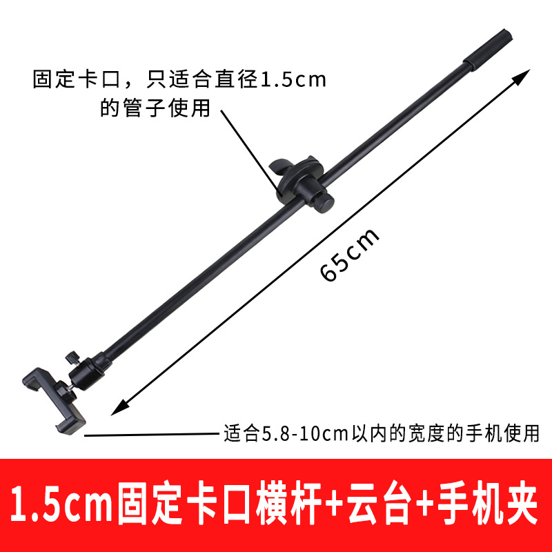 - Product specifications: 1.5cm fixed shaft crossbar + pan/tilt + mobile phone clip