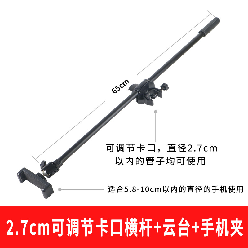 - Product specifications: 2.7cm adjustable C-shaped shaft crossbar + pan/tilt + mobile phone clip