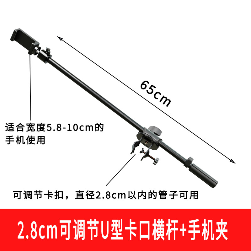- Product specifications: 2.8cm adjustable C-shaft crossbar + pan/tilt + mobile phone clip