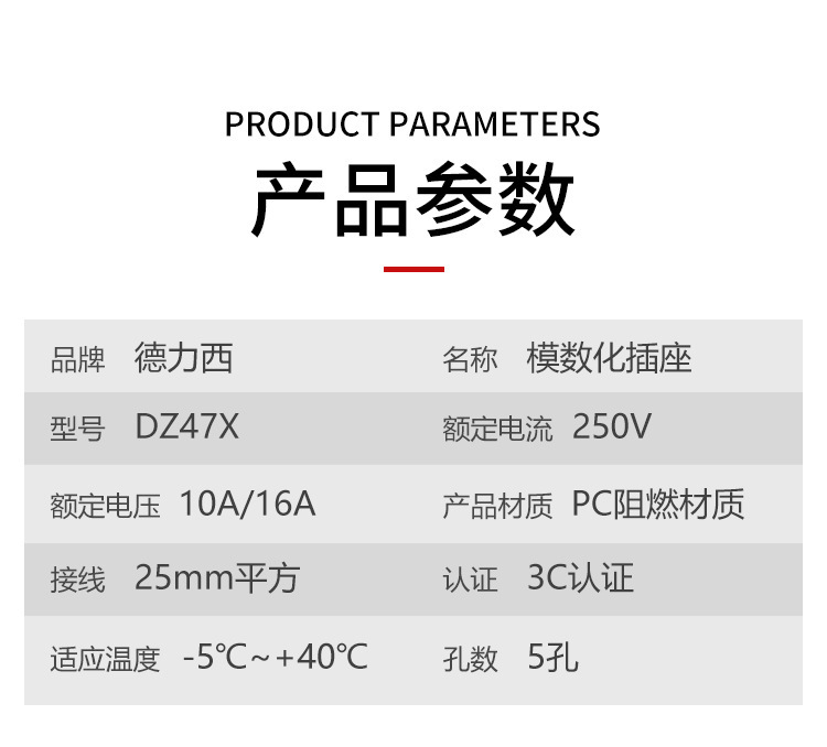 - Specifications and models: Two plugs 10A + Three plugs 16A*18MM*0.2
