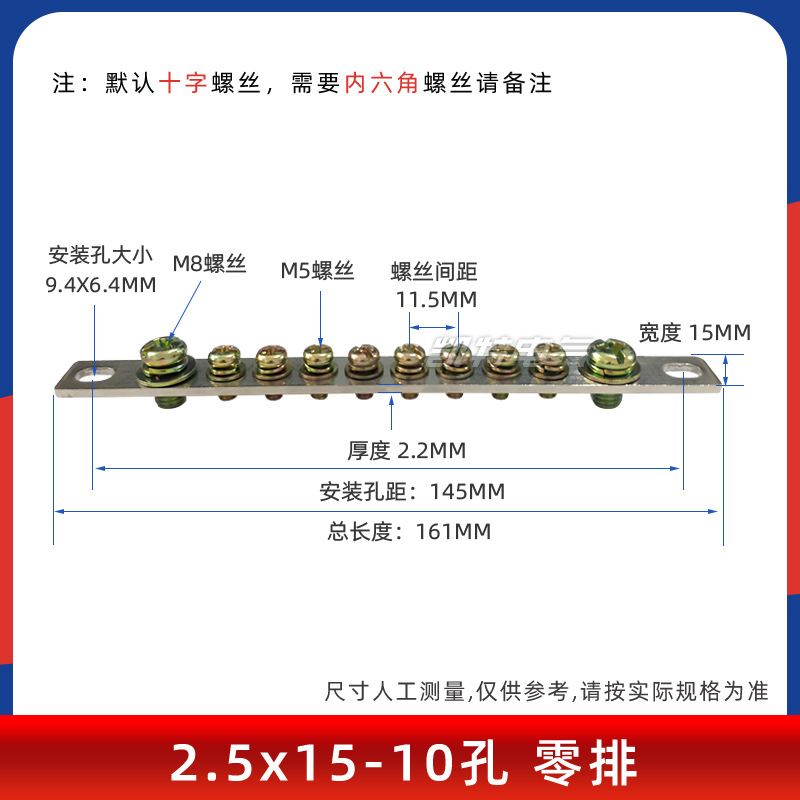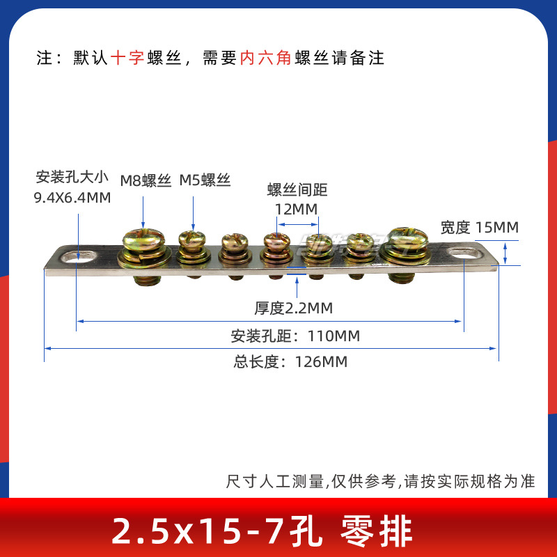 - Model: Cross 2.5*15-7 holes zero row