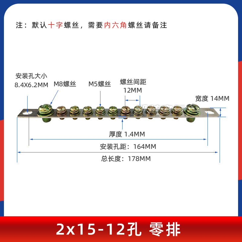 - Model: Hexagon socket 2*15-12 holes zero row