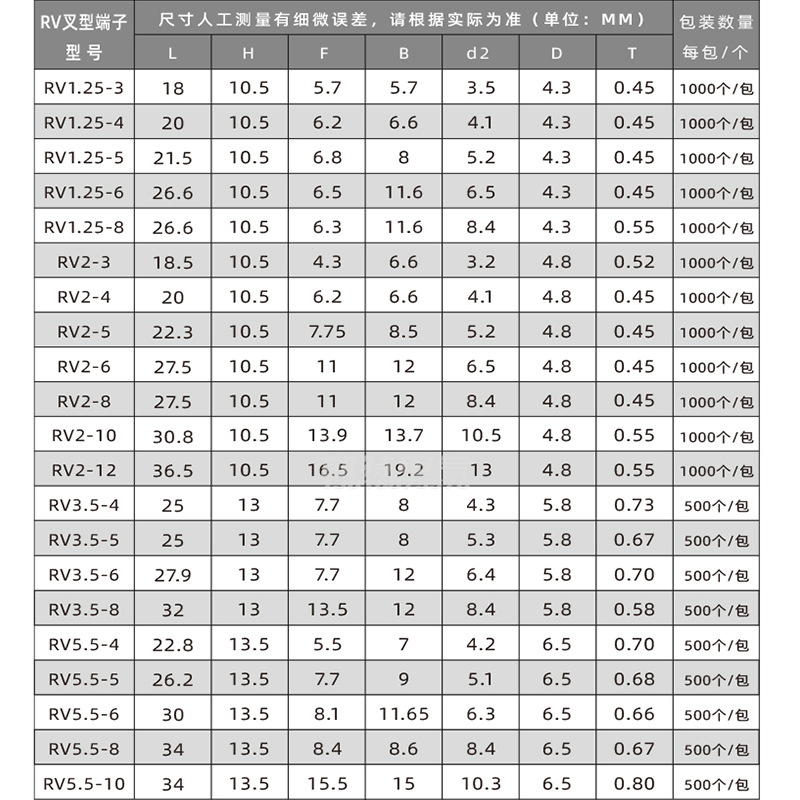 - Model: red RV1.25-5 brass 1000 pieces