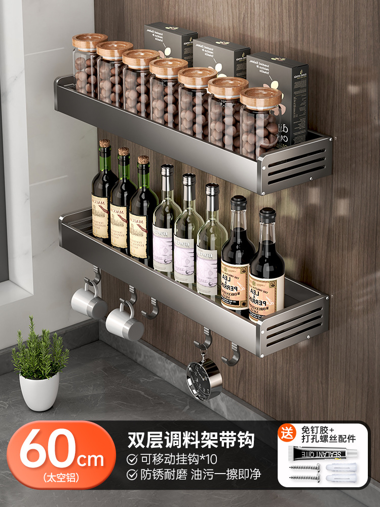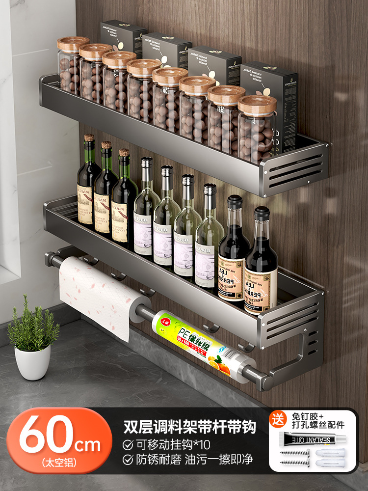 - Number of Layers (Specification): Double-Layer Spice Rack 60cm with Rod (10 hooks) - 50047