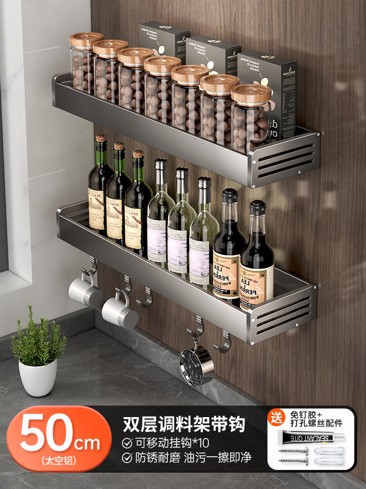 - Number of Layers (Specification): Double-Layer Spice Rack 50cm with Rod (10 hooks) - 50030