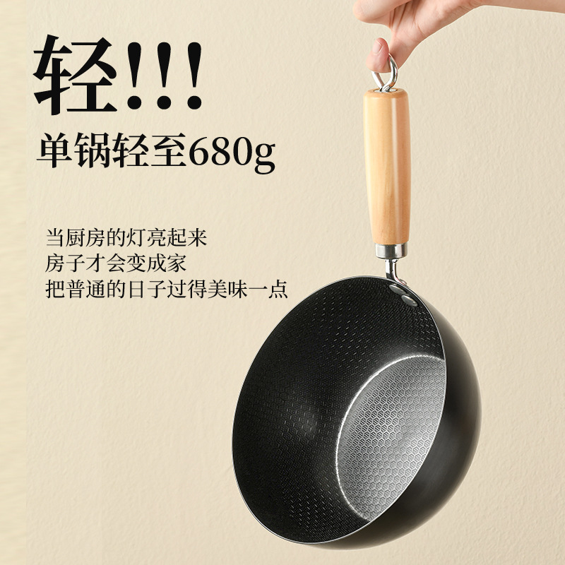 - Specifications: [No coating, no boiling required] 28CM small wok (with lid) + wooden spatula