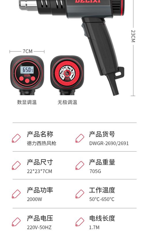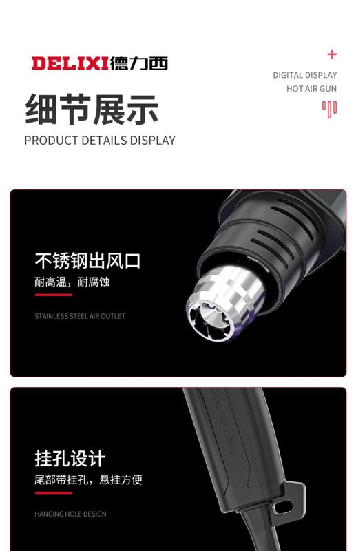 - Type: Digital display temperature regulating hot air gun