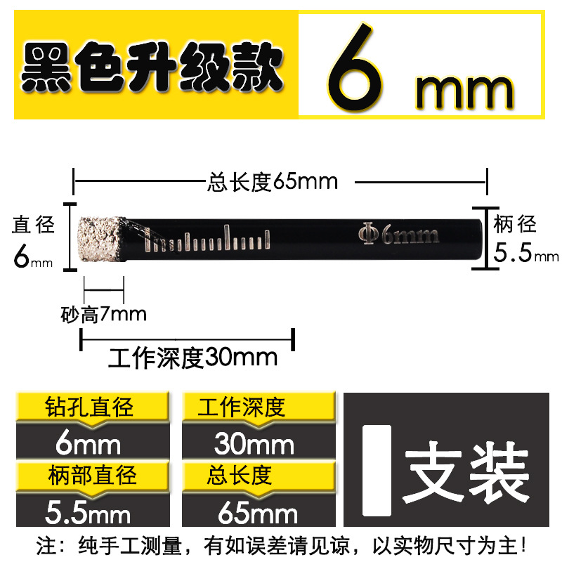 - 型號:【黑色升級款】全瓷玻化磚干鑽6mm