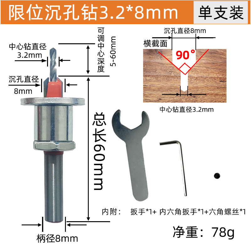 - Model: 3.2*8mm countersink drill without limit ring