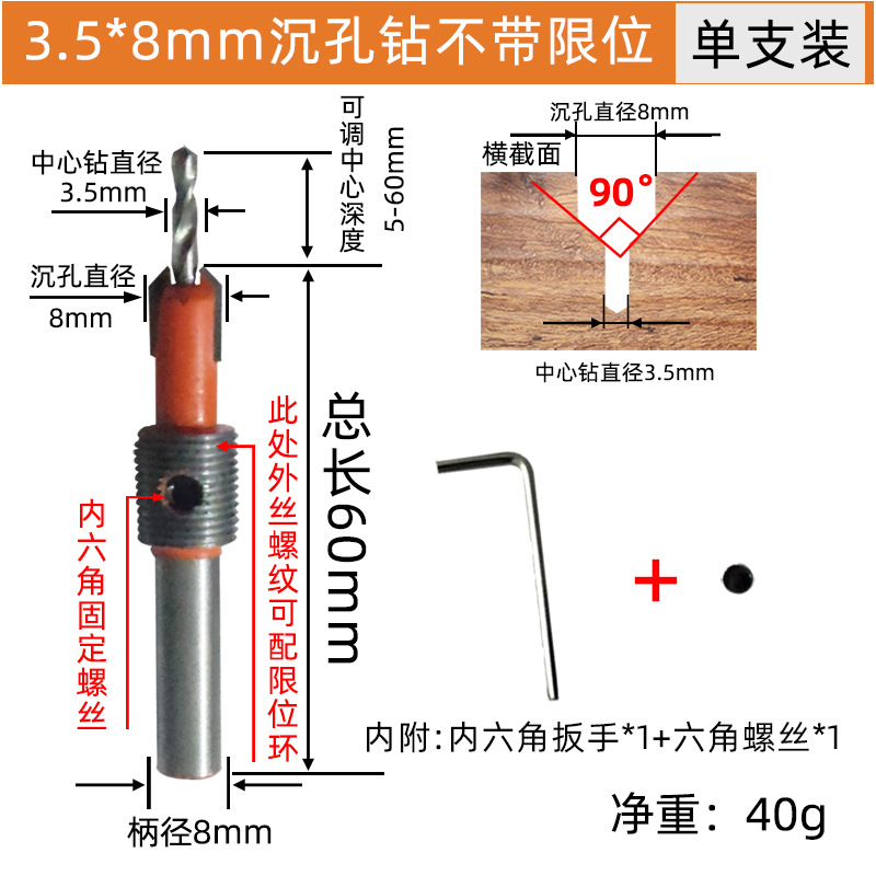 - Model: 4.0*8mm countersink drill without limit ring