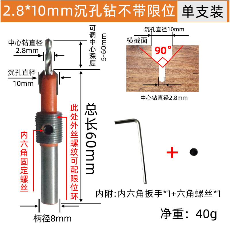 - Model: 4.0*10mm countersink drill without limit ring
