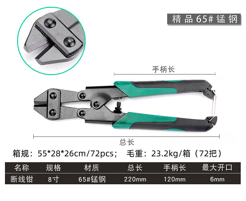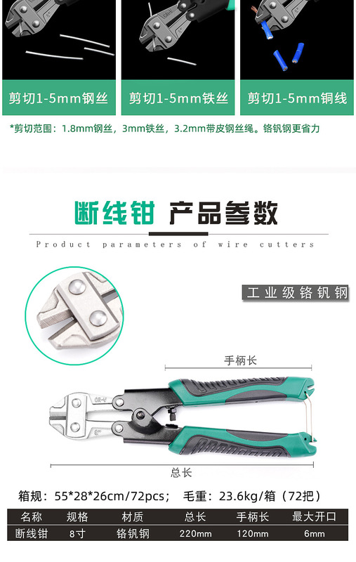 - Model: 8-inch Bolt Cutters-Chromium Vanadium Steel [12/box, 72/box, single price]