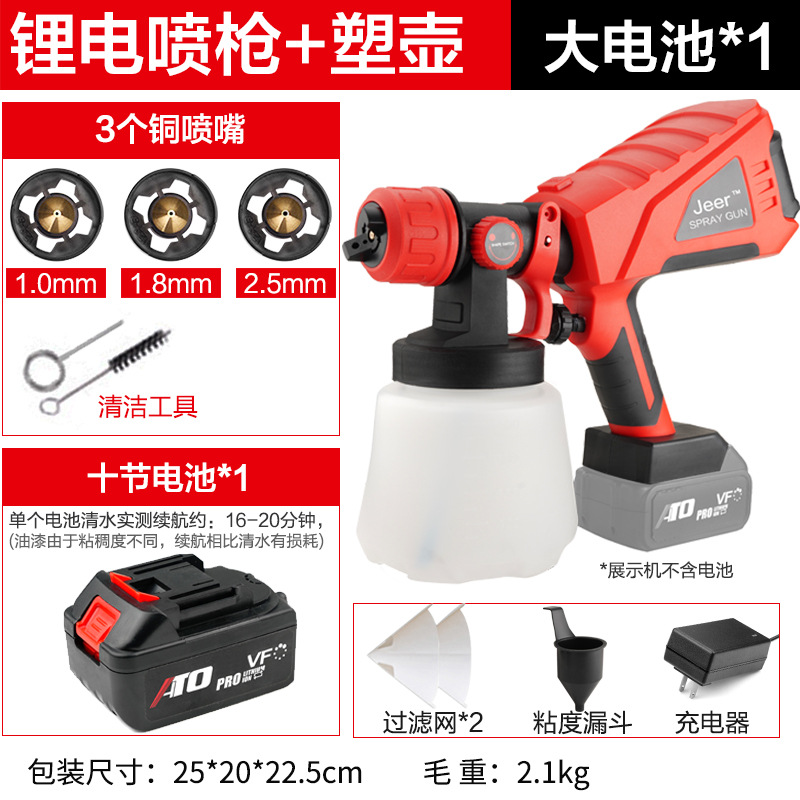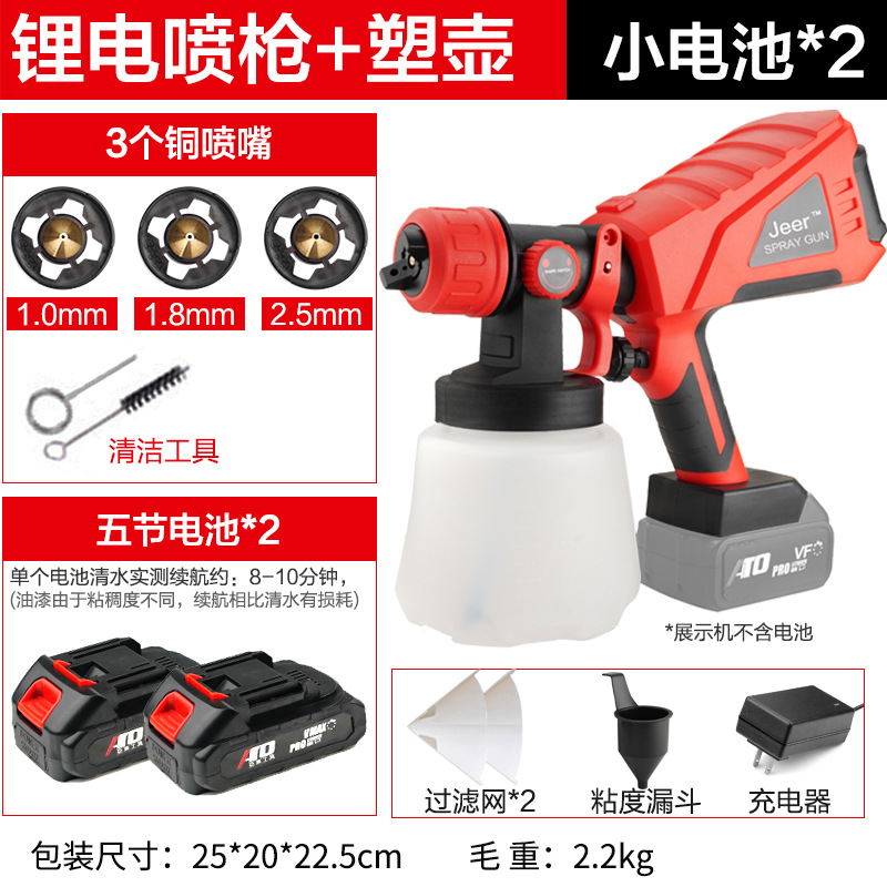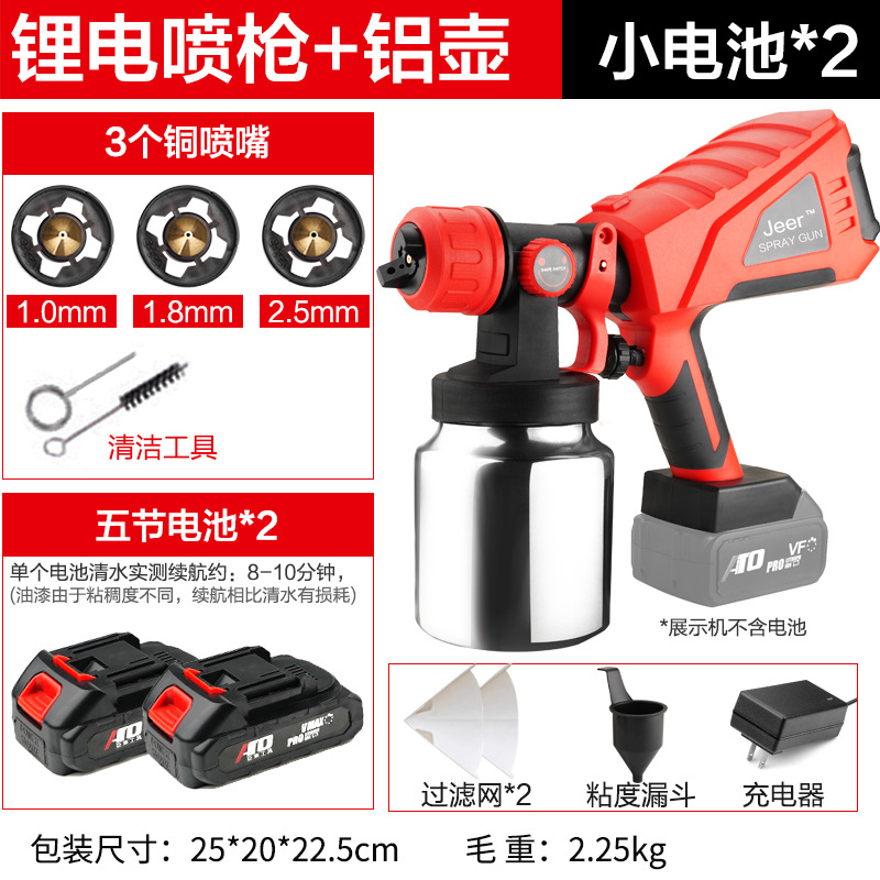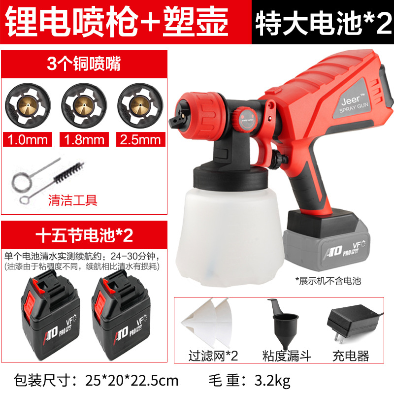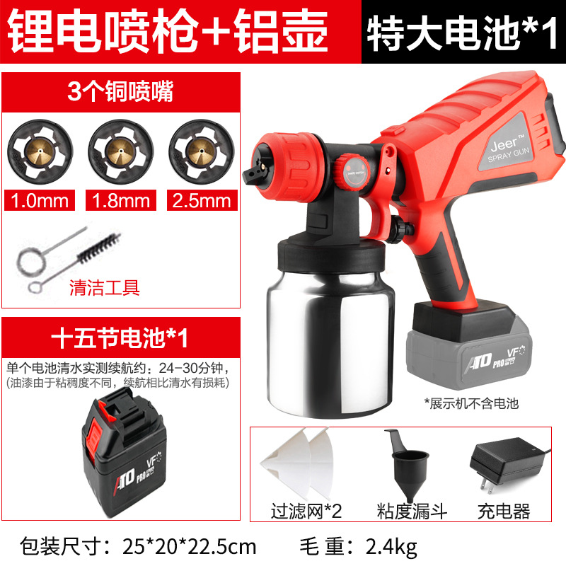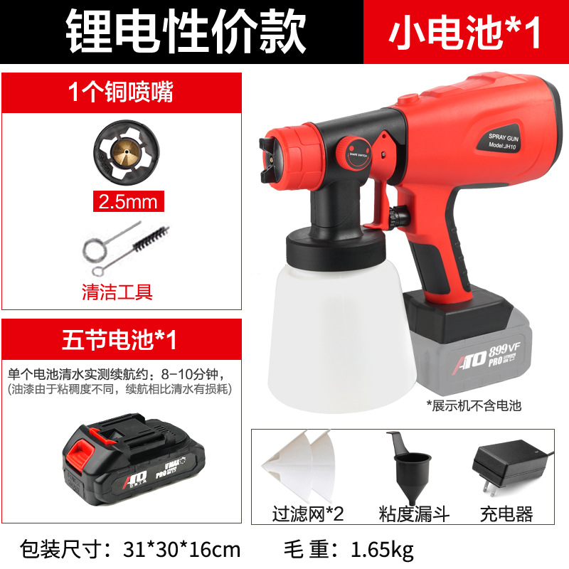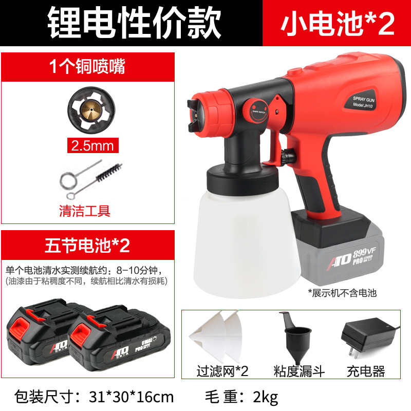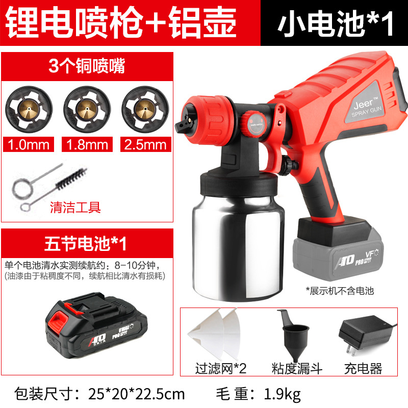 - Specifications: Type A - industrial grade lithium battery (small battery, 2 batteries, 1 charger + plastic pot + 3 all-copper nozzles)