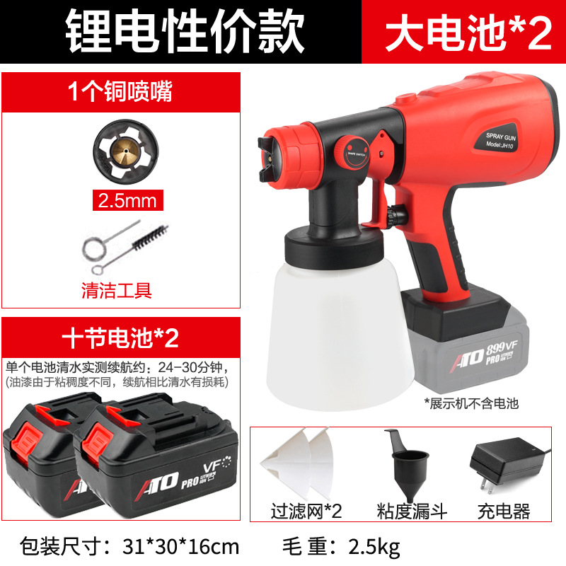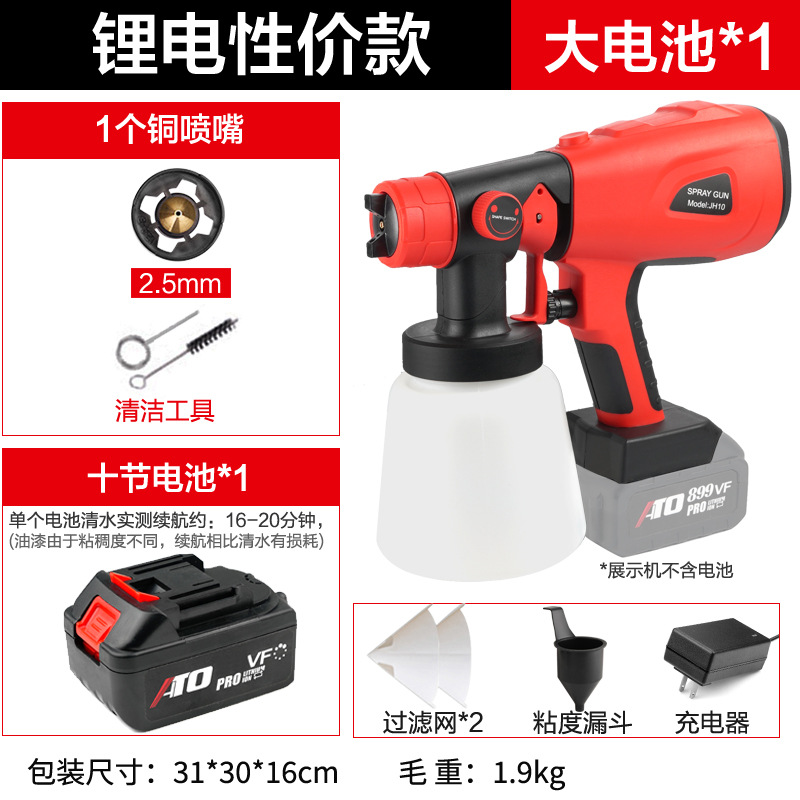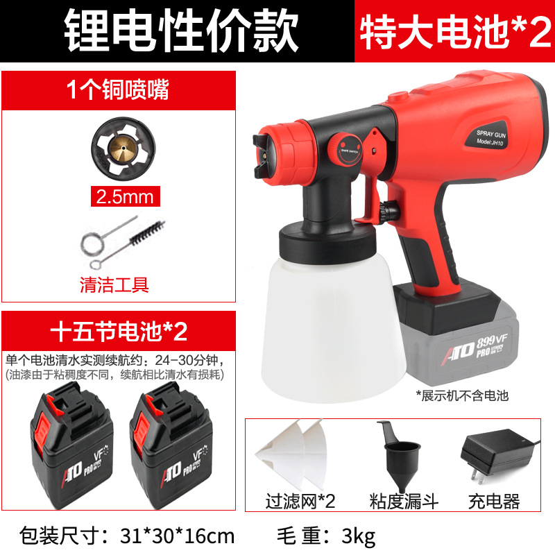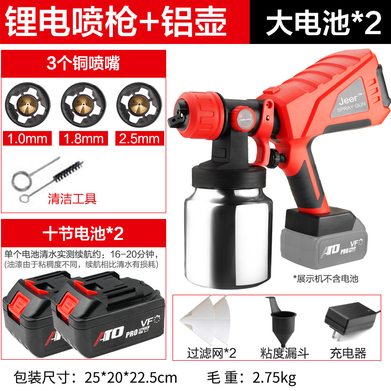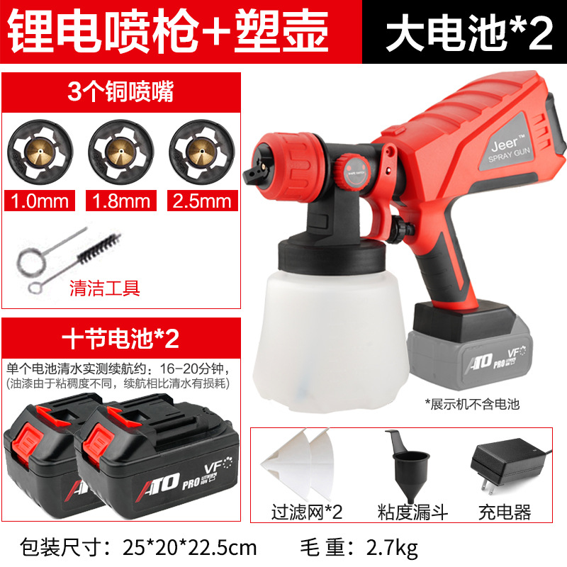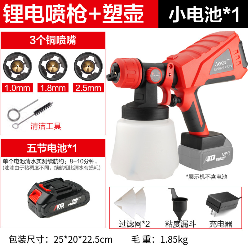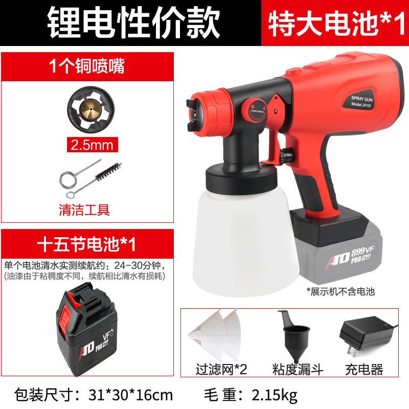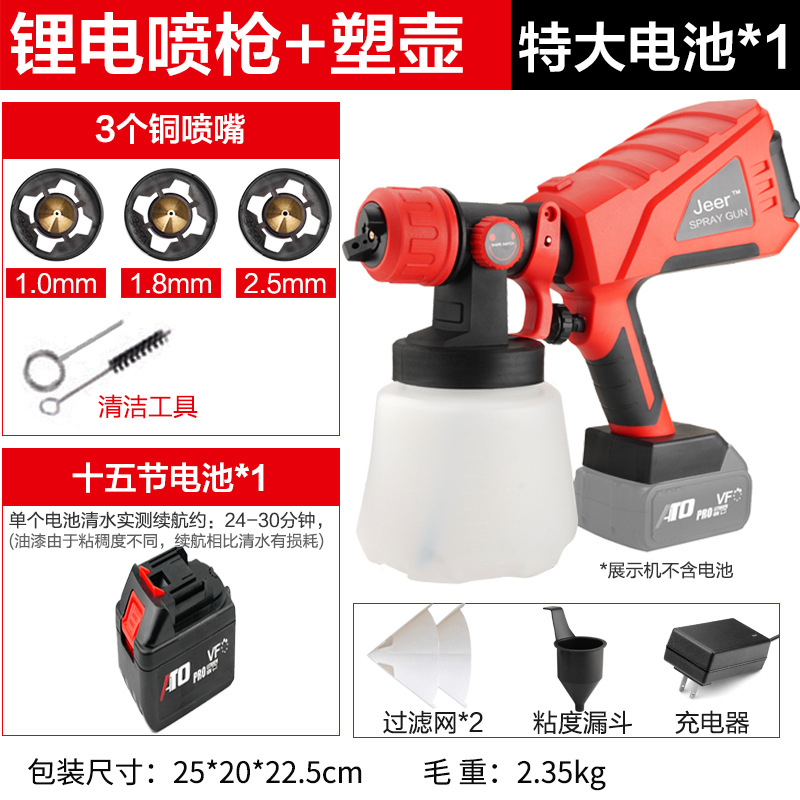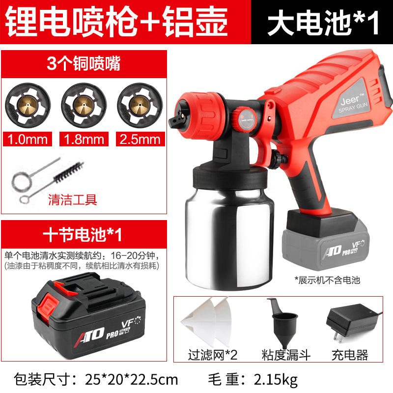 - Specifications: Type A - industrial grade lithium battery (small battery, 2 batteries, 1 charger + plastic pot + 3 all-copper nozzles)