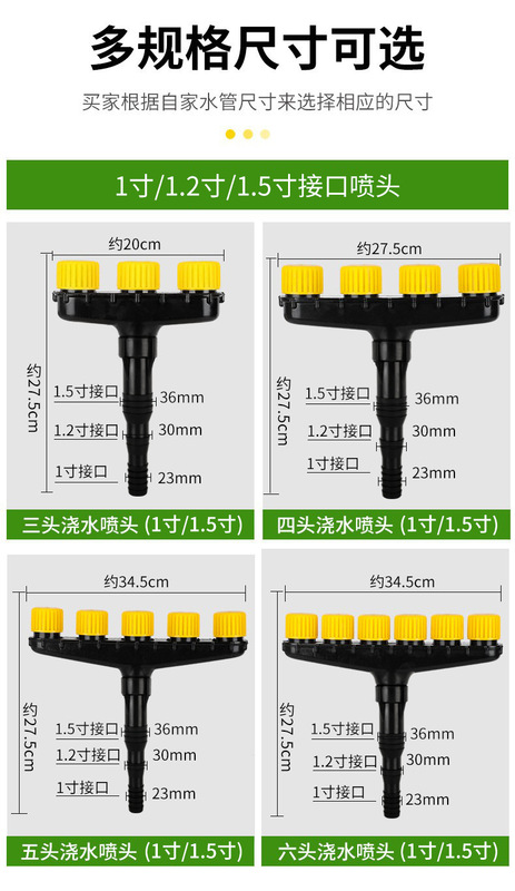 - Specifications: 6 spray heads with 1-inch/1.2-inch/1.5-inch pipe interface