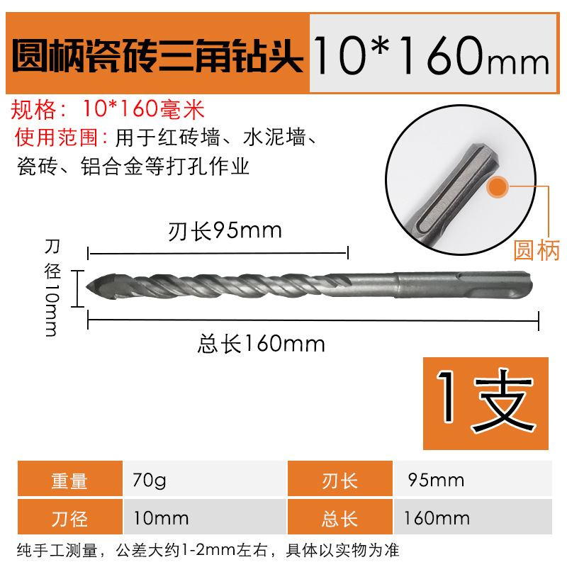 - Model Specification: Round Handle Hammer Drill One-Point Tile Triangle Drill Bit 10*160mm