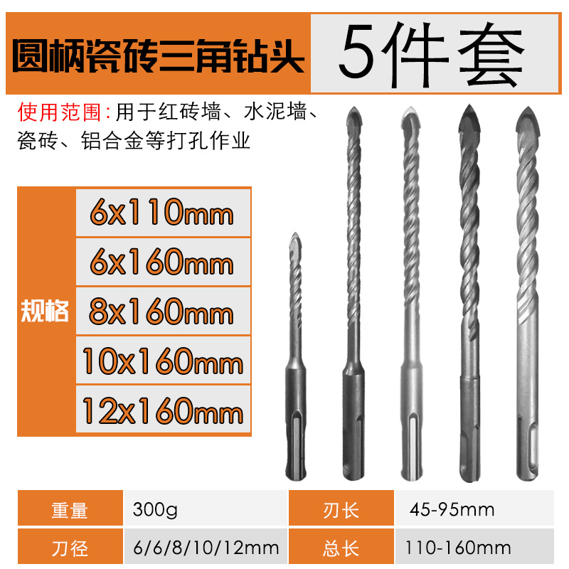- Model Specification: 6-12mm [5PCS] Round Handle Hammer Drill One-Point Triangle Drill Bit