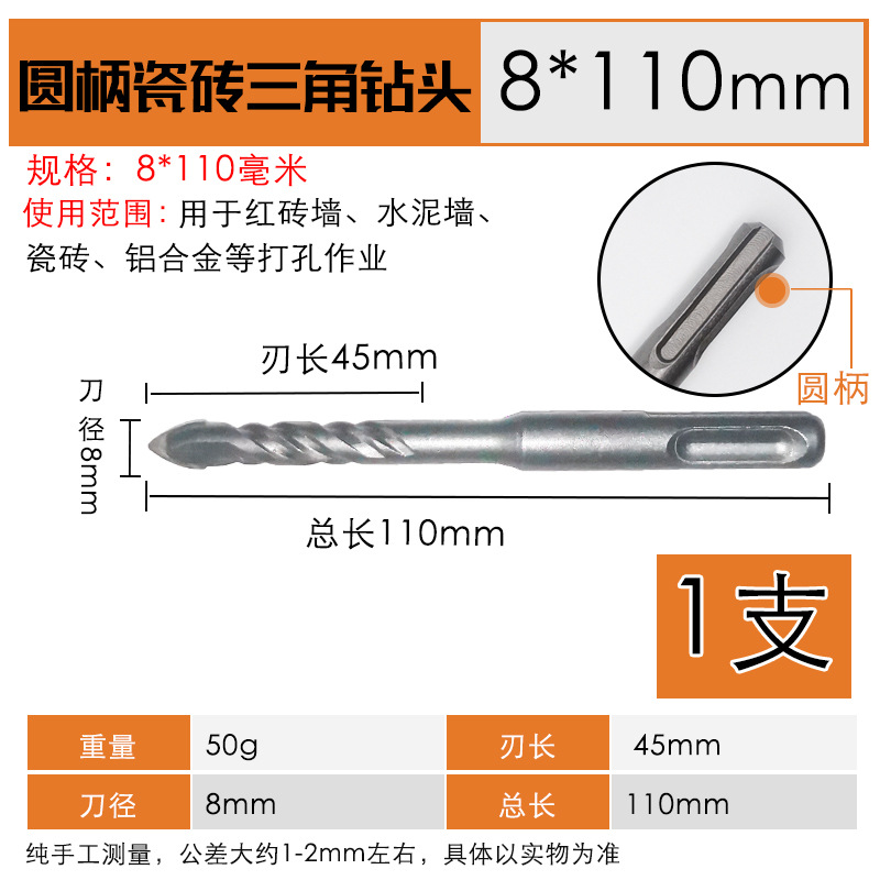 - Model Specification: Round Handle Hammer Drill One-Point Tile Triangle Drill Bit 8*110mm