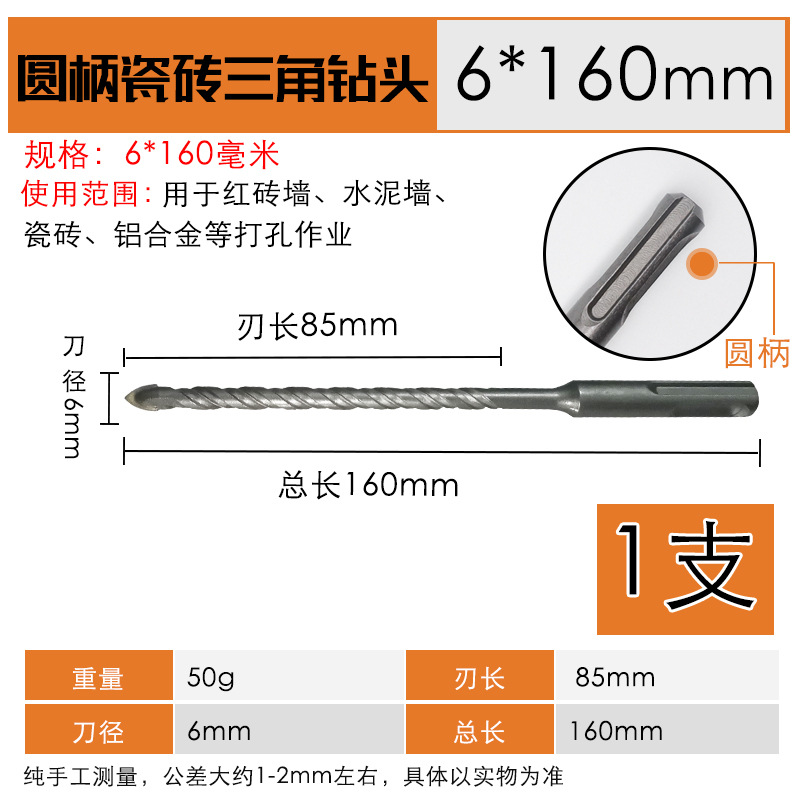 - Model Specification: Round Handle Hammer Drill One-Point Tile Triangle Drill Bit 6*160mm