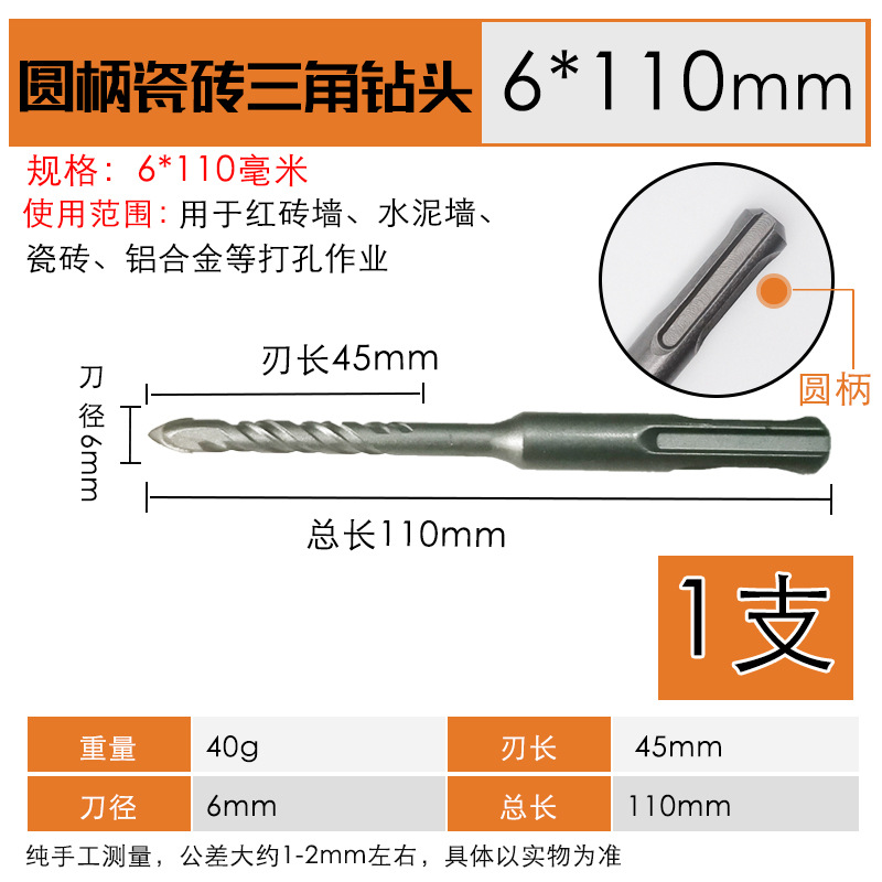 - Model Specification: Round Handle Hammer Drill One-Point Tile Triangle Drill Bit 6*110mm