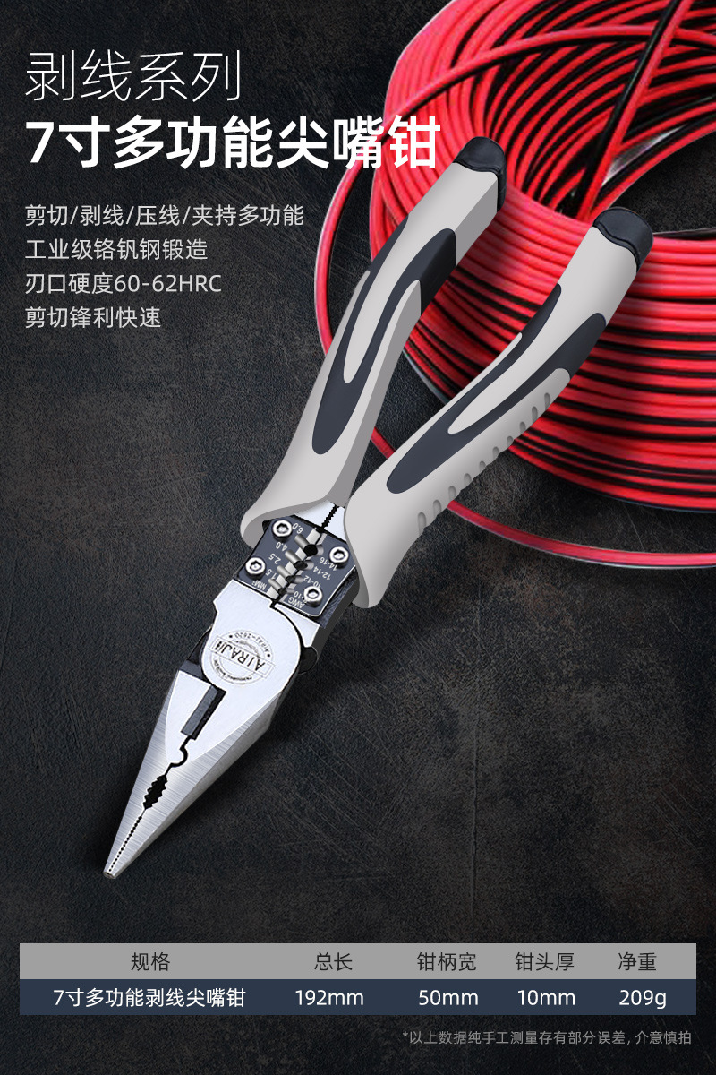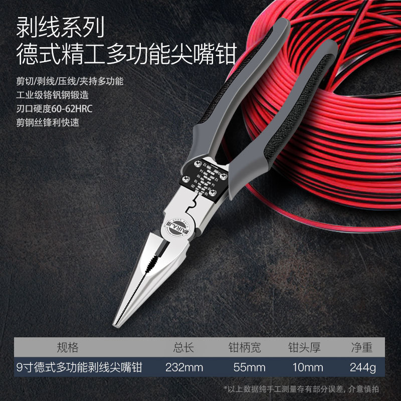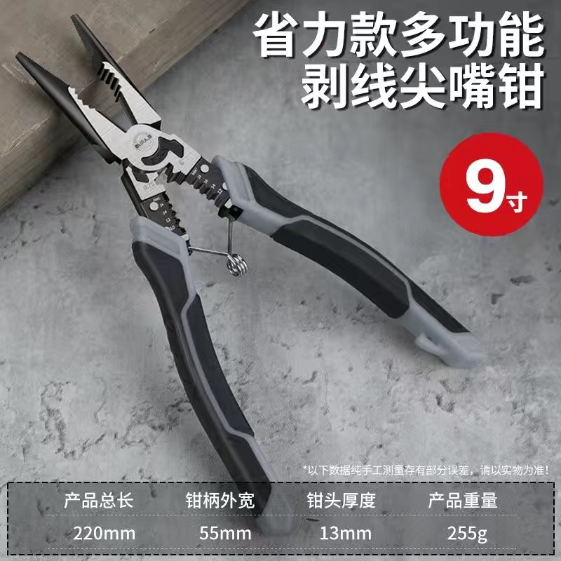 - Model: 9-inch labor-saving multi-functional wire stripping needle nose pliers (Item No. 1209)