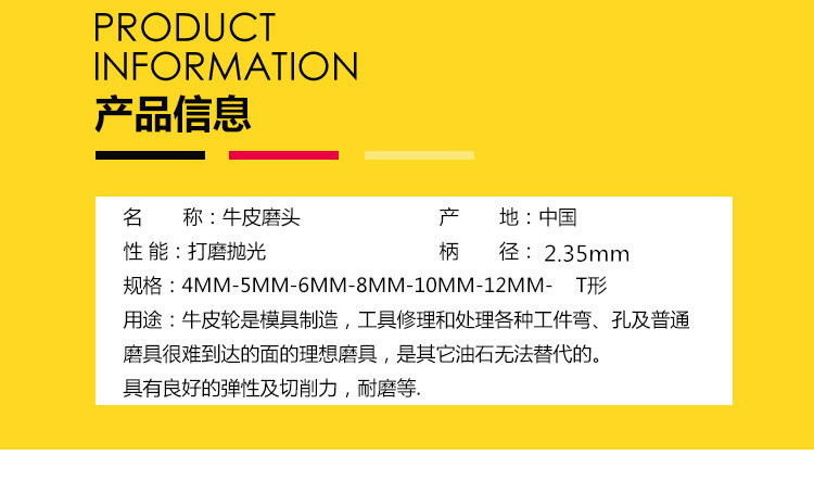 - Specifications: Cowhide grinding head 2.35*6 (bullet head)
