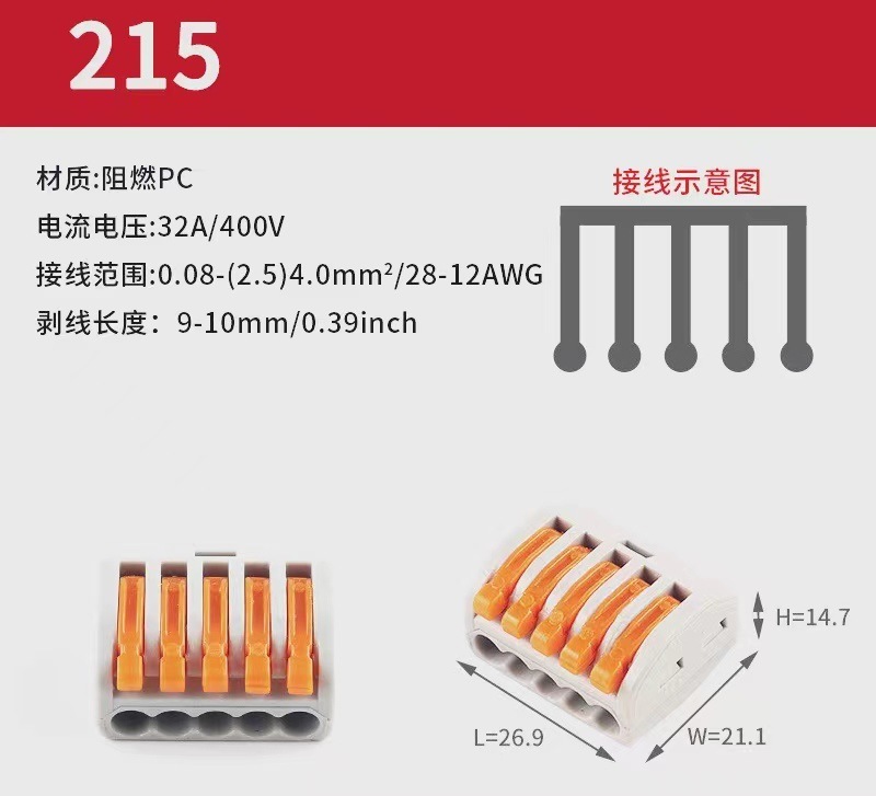 - 型號:21系列快速端子連接器接頭