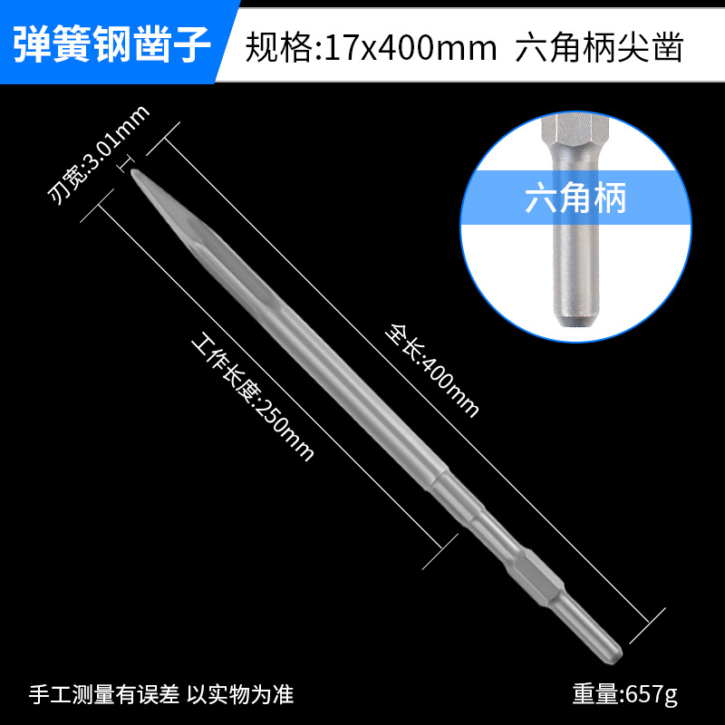 - Model: Hard Spring Steel Hex Shank Point Chisel 17x400mm