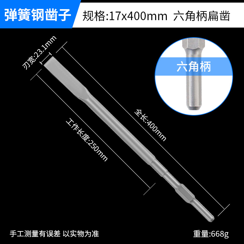 - Model: Hard Spring Steel Hex Shank Flat Chisel 17x400mm