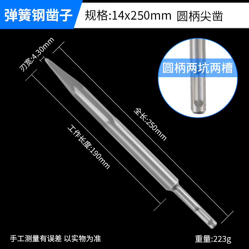 - Model: Hard Spring Steel Round Shank Point Chisel 14x250mm