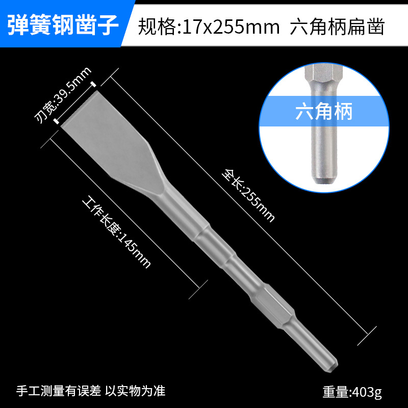 - Model: Hard Spring Steel Hex Shank Wide Flat Chisel 17x255mm