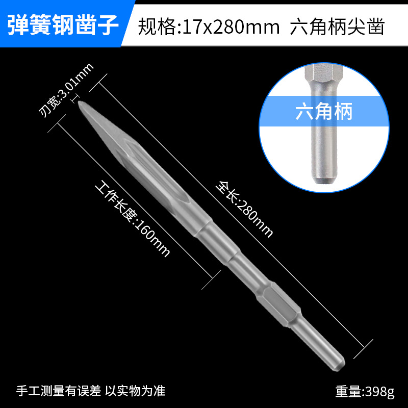 - Model: Hard Spring Steel Hex Shank Point Chisel 17x280mm