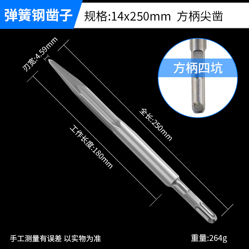 - Model: Hard Spring Steel Square Shank Point Chisel 14x250mm
