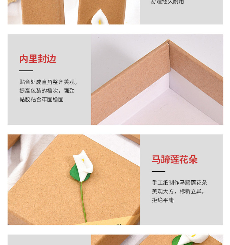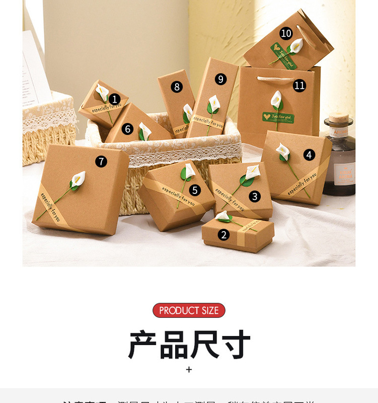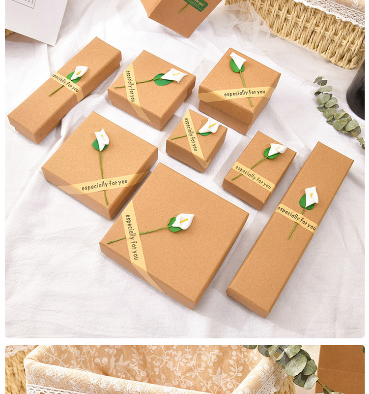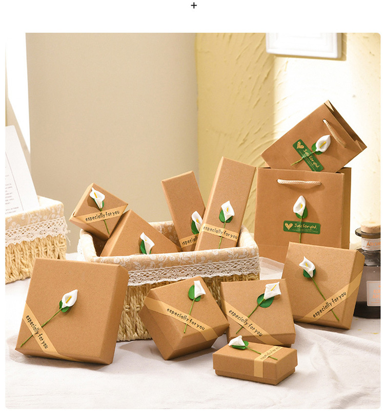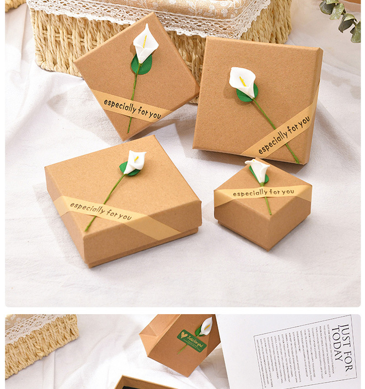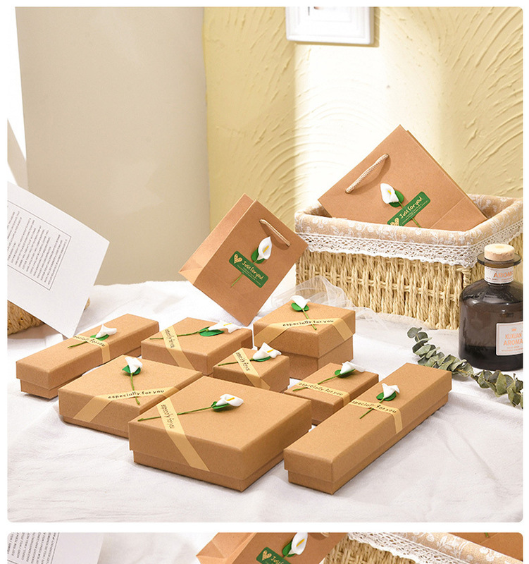 - 1: Paper retro kraft paper stickers calla lily flower earrings necklace ring jewelry jewelry box lily flower gift box