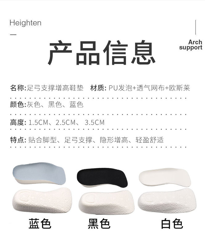 - Insole Function:Heightening Insole