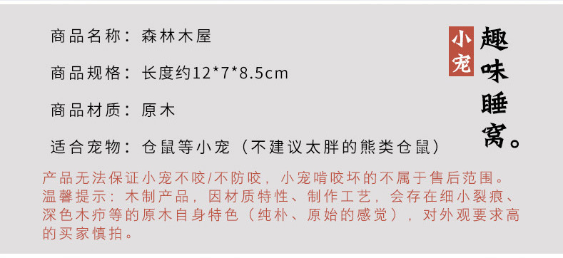 - Specifications: Forest cabin